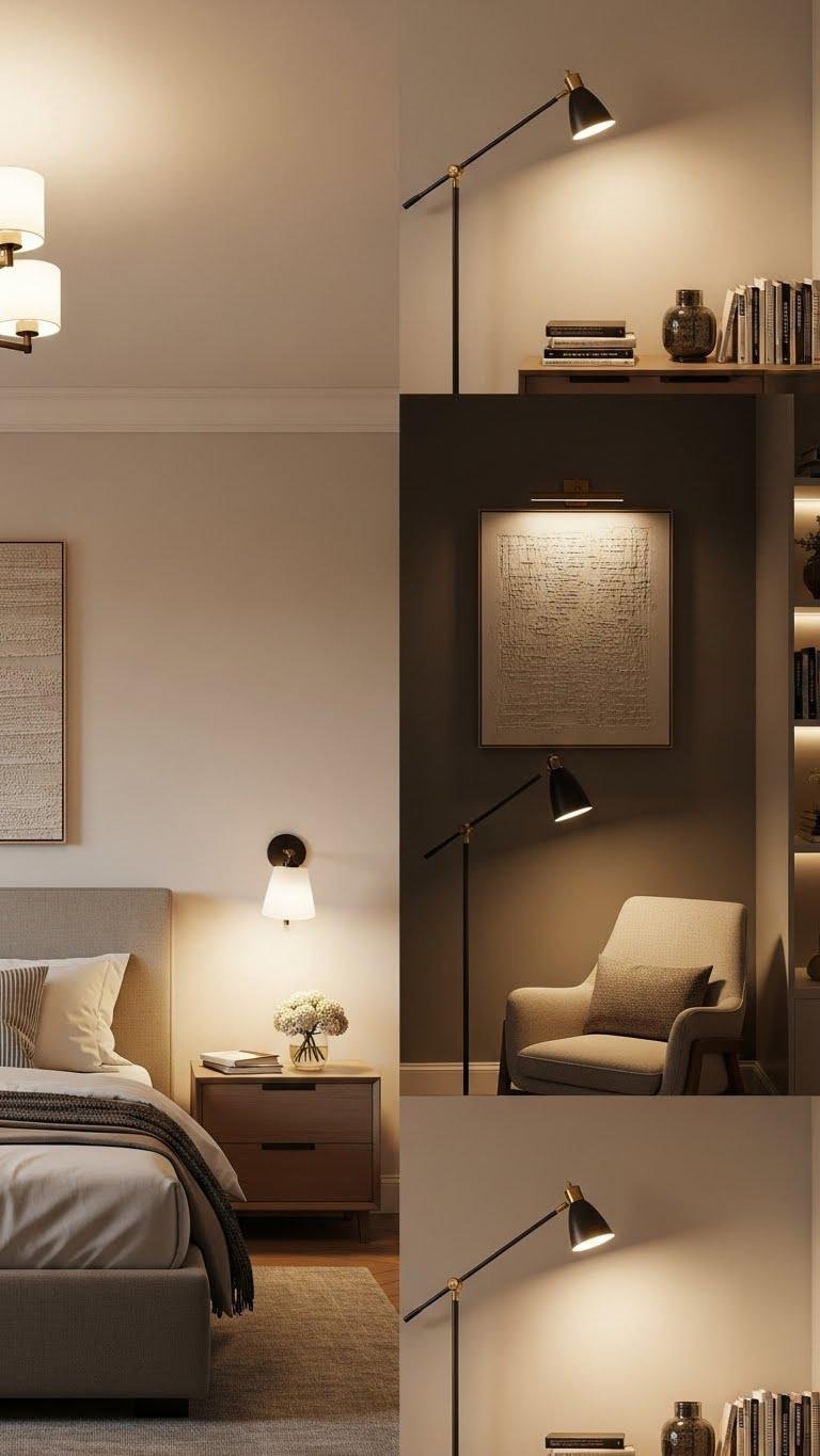 Layering lighting transforms a bedroom from flat to inviting by combining ambient, task, and accent sources so each activity has its ideal light.