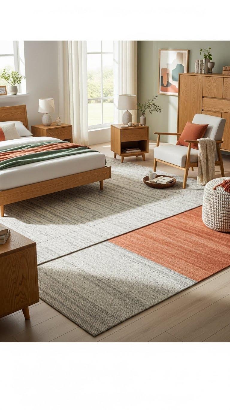 Layer textured runners sparingly for warmth and deliberate pattern overlap to add depth without clutter. You’ll gain a freer, cohesive look that reads larger and more intentional.