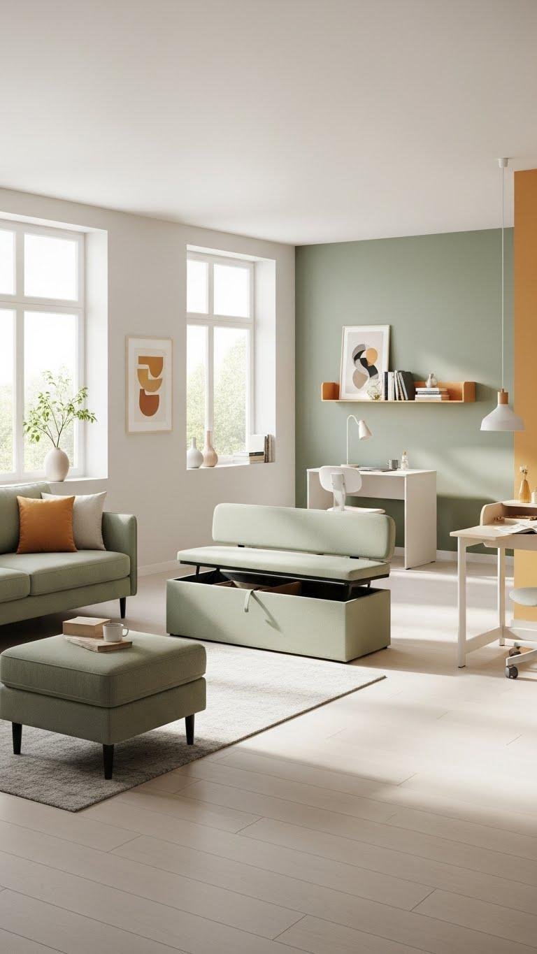 Choose dual purpose furniture—benches with storage, nightstands that double as desks, ottomans with hidden compartments—so every item earns its place. You’ll feel freer, move easier, and keep the room minimalist without sacrificing style or function.