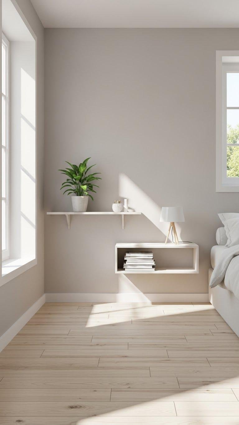 If you want a more open, airy bedroom, mount nightstands and shelves on the wall to free floor space and create a cleaner visual line. Choose floating nightstand ideas that tuck essentials away without bulk. Pair with slim shelf styling for plants, books, or a lamp. You’ll gain movement, light, and a minimalist vibe that feels liberating and easy to maintain.
