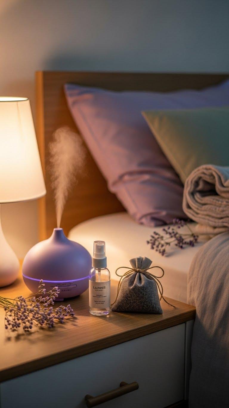 Once you’ve quieted external noise, scent becomes a powerful tool for cueing your body toward rest. You’ll use lavender and subtle florals in bedtime rituals to anchor shift and invite calm. Try scent layering—a diffuser, linen spray, or a sachet—so aroma evolves without overpowering. Choose pure essential oils, keep intensity low, and let fragrance gently signal freedom to unwind.
