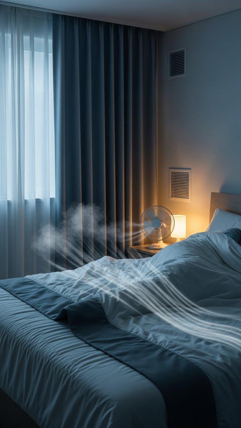 You’ll use thermal curtains to block daytime warmth, run a fan or AC gently, and choose phase change sheets or breathable cotton.