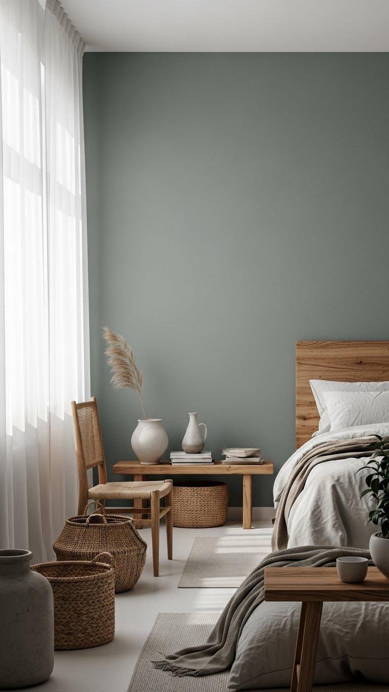 Gray-Green Accent Wall for a Restful Retreat