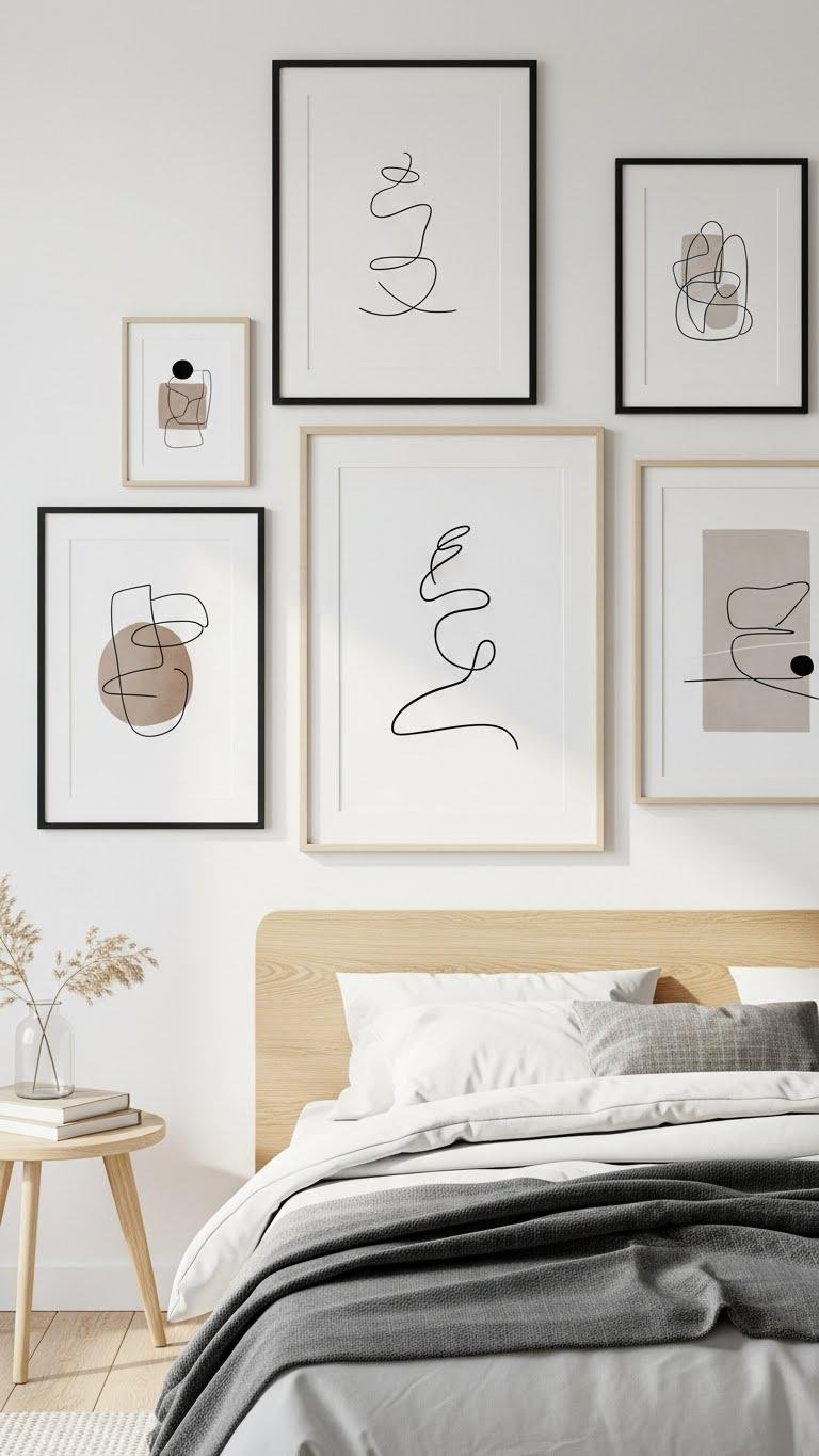 Clean, confident line work can quietly transform your bedroom into a calm gallery-like retreat that emphasizes form and negative space.