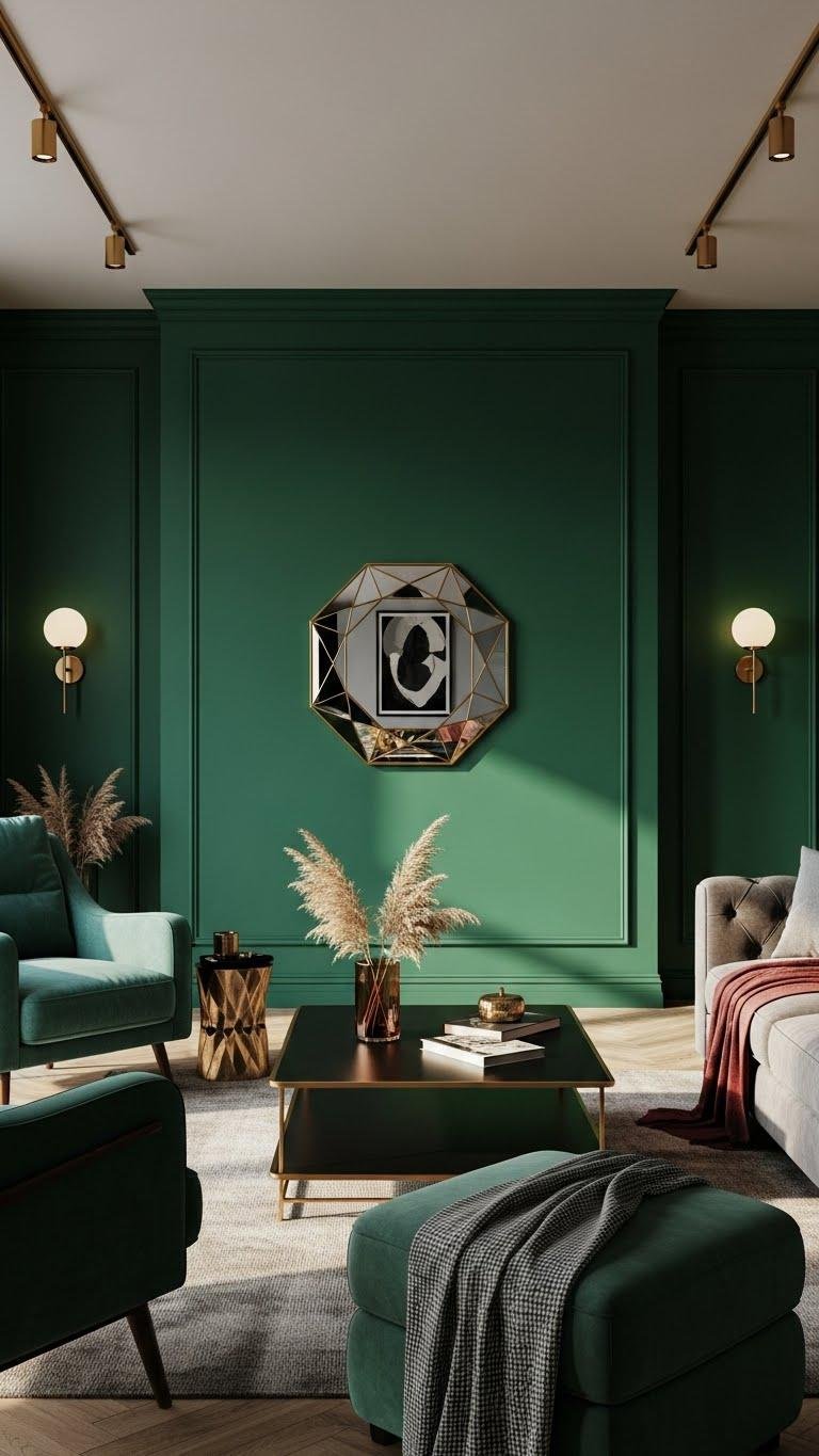 Think of an accent wall as the room’s headline: pick a jewel tone—emerald, sapphire, amethyst, or ruby—and you’ll instantly lift the whole space. You’ll choose a saturated trimline to frame the drama, let textured velvet or brass details sing, and arrange a gemstone focalpoint—art or mirror—that anchors freedom-loving decor. The result feels bold, intentional, and effortlessly modern.