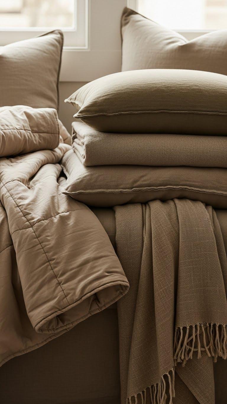 Lean into layers of the same hue—think oatmeal quilts, sand-colored linen throws, and washed-moss cushions—to drench a space with subtle depth without relying on high-contrast accents.