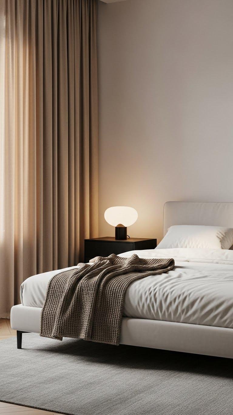 Keep a minimalist bedside table and a single sculptural lamp; you’ll create breathing room that’s elegant and free.
