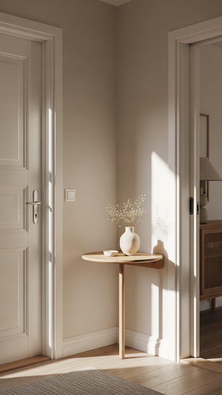 Light, airy colors instantly make a small entry feel larger and more welcoming, so choose soft whites, pale grays, or warm creams to reflect light and blur boundaries.