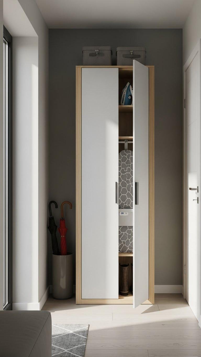 It frees the floor, conceals boots, umbrellas and a hidden ironing board, and lets you curate a minimalist entry that feels open, liberated and poised for spontaneous departures.
