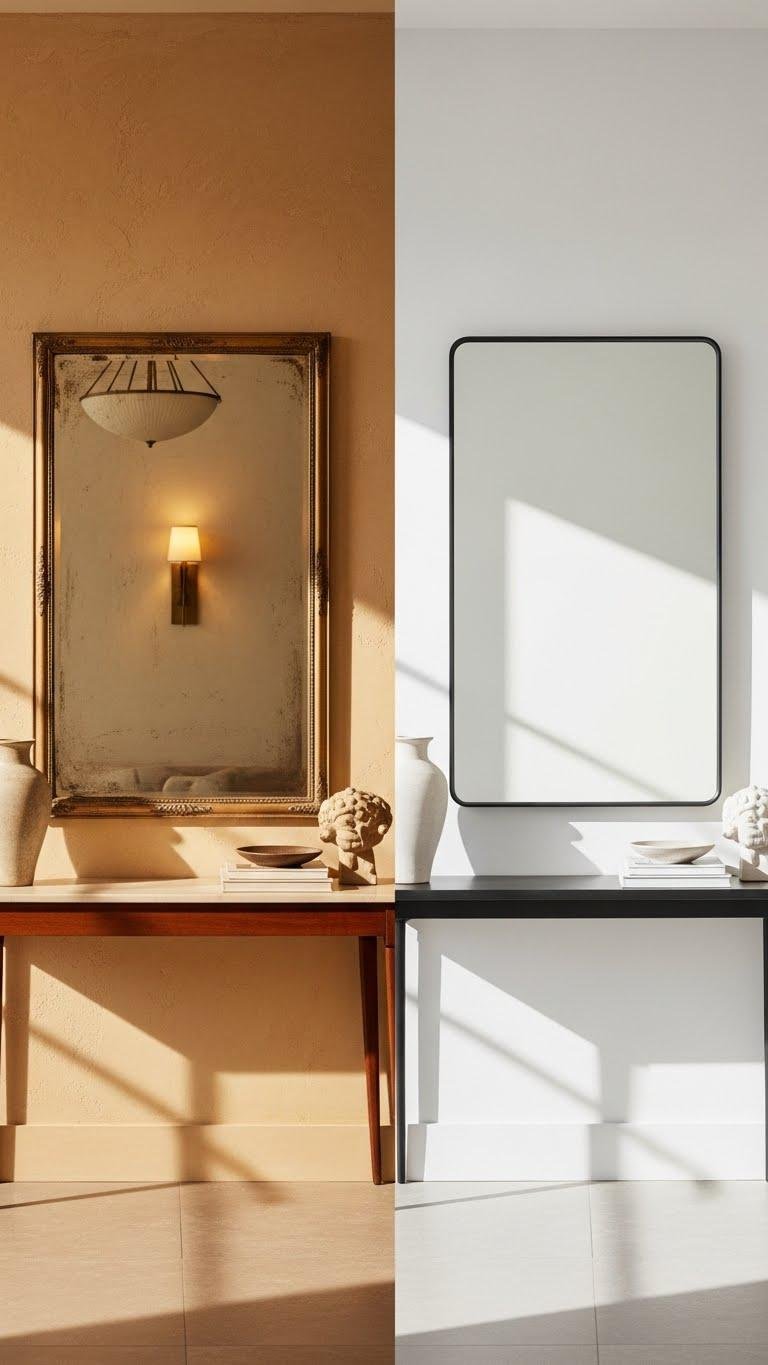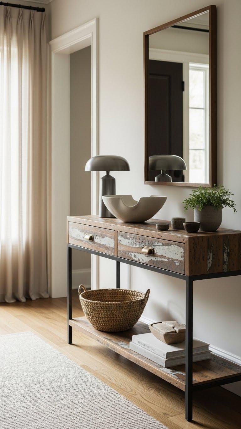 If you want to give your entryway instant personality, anchor the console with a mirror—vintage for soulful patina or modern for crisp, reflective minimalism.