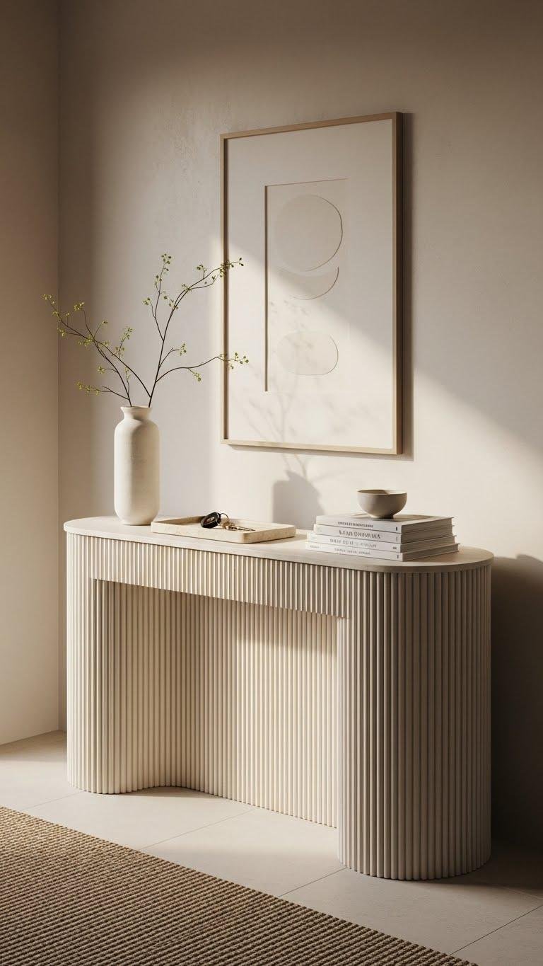 Pull in a fluted console to give your entryway instant sculptural poise—its rhythmic grooves read modern yet timeless, so you can keep the rest of the vignette spare and striking.