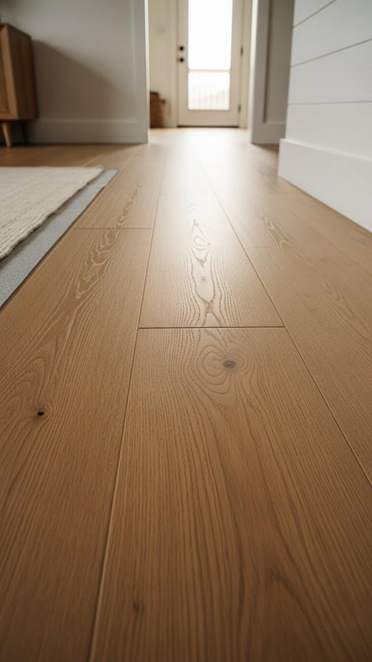 Choose boards with consistent cathedral‑free lines, install over acclimated underlayment to prevent movement, and layer discreet acoustical insulation for quiet steps.