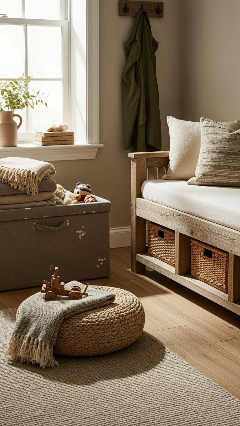 Add hemp throws for warmth and easy care, draping them over arms or benches. Mix woven baskets, linen pillows, and raw-edge rugs to create an open, relaxed vibe that lets you move and live freely.