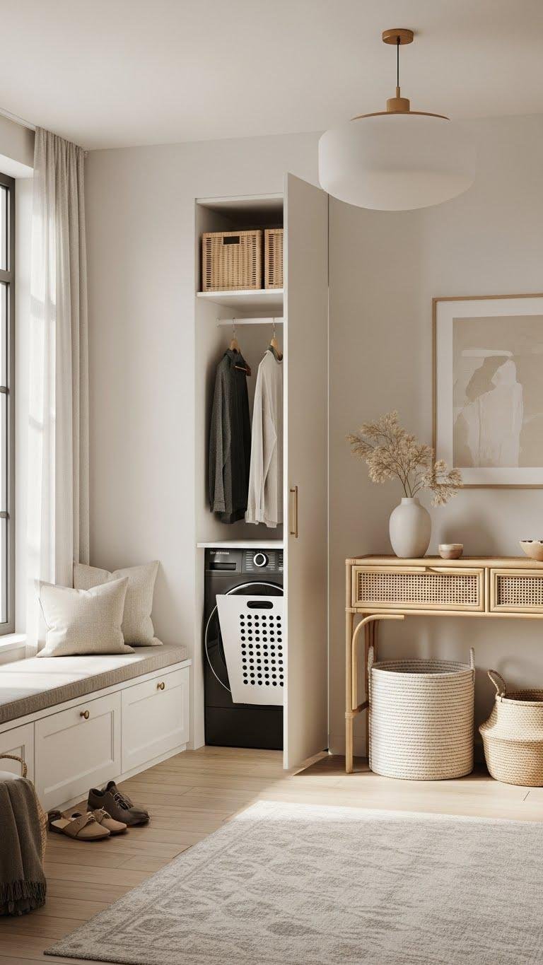 You’ll choose hidden hampers for laundry areas, slim built-ins under benches, and woven consoles to anchor entryways. Prioritize accessibility, consistent materials, and breathable textures so every piece feels intentional. This approach frees you to live simply and stylishly, without compromise.