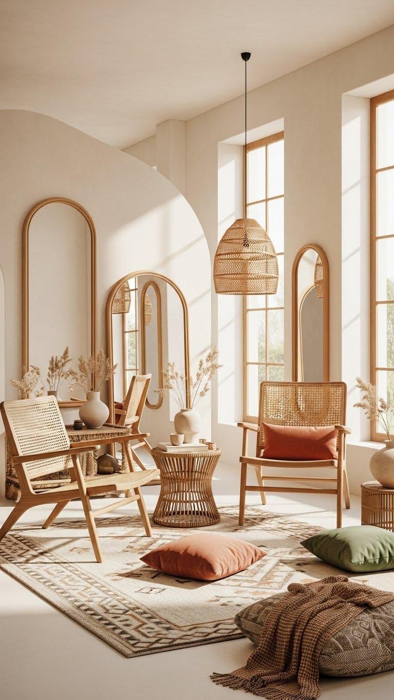 Introduce woven accents—baskets, chair seats—to anchor warmth without clutter.