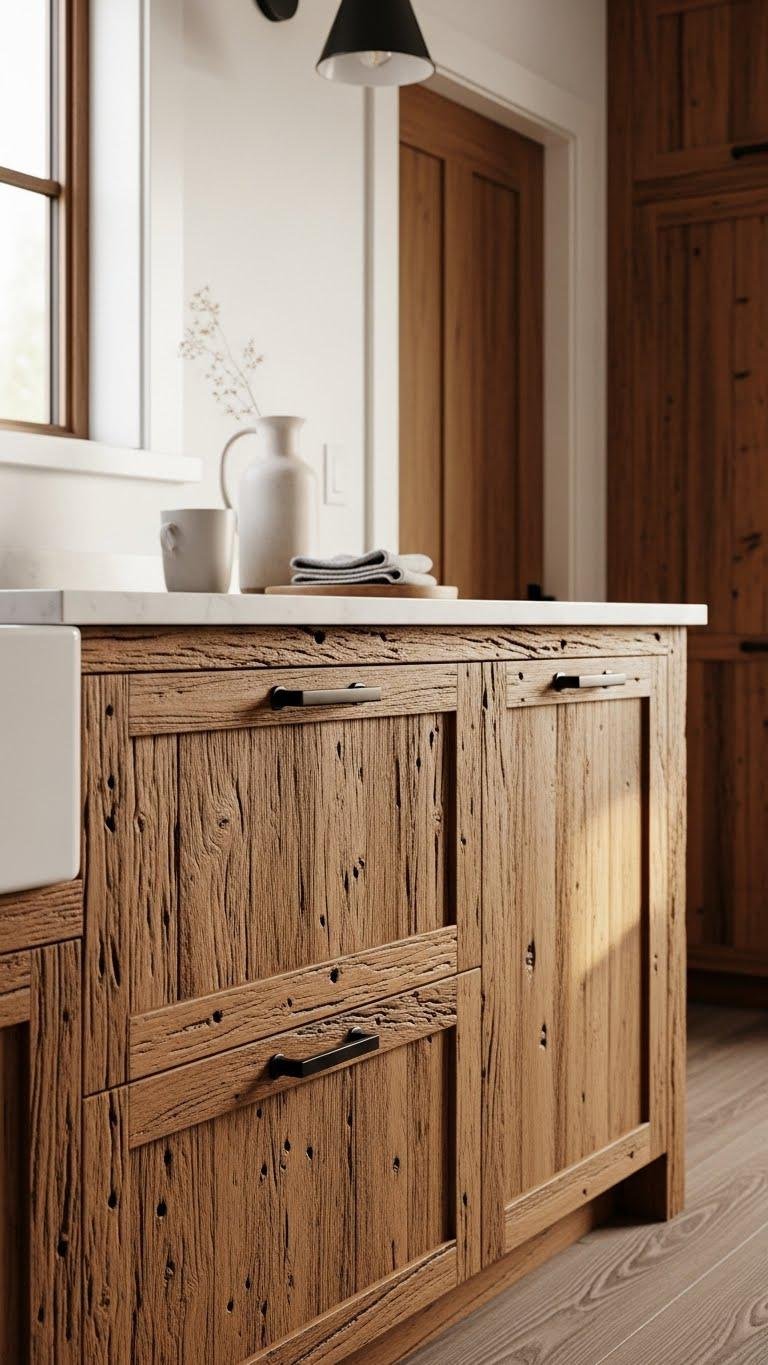 Reclaimed Wood Cabinetry for Warmth and Sustainability