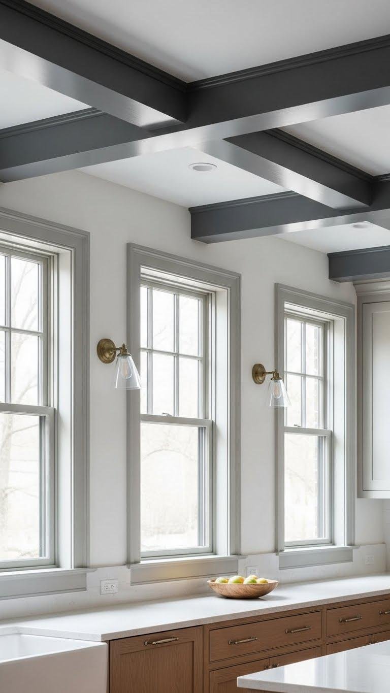 You’ll love how painted beams and crisp window trim create rhythm, define sightlines, and reinforce a cohesive palette without clutter. Choose matte neutrals or deep contrast to anchor cabinetry, then enjoy a liberated, calm kitchen that reads intentional and effortless.
