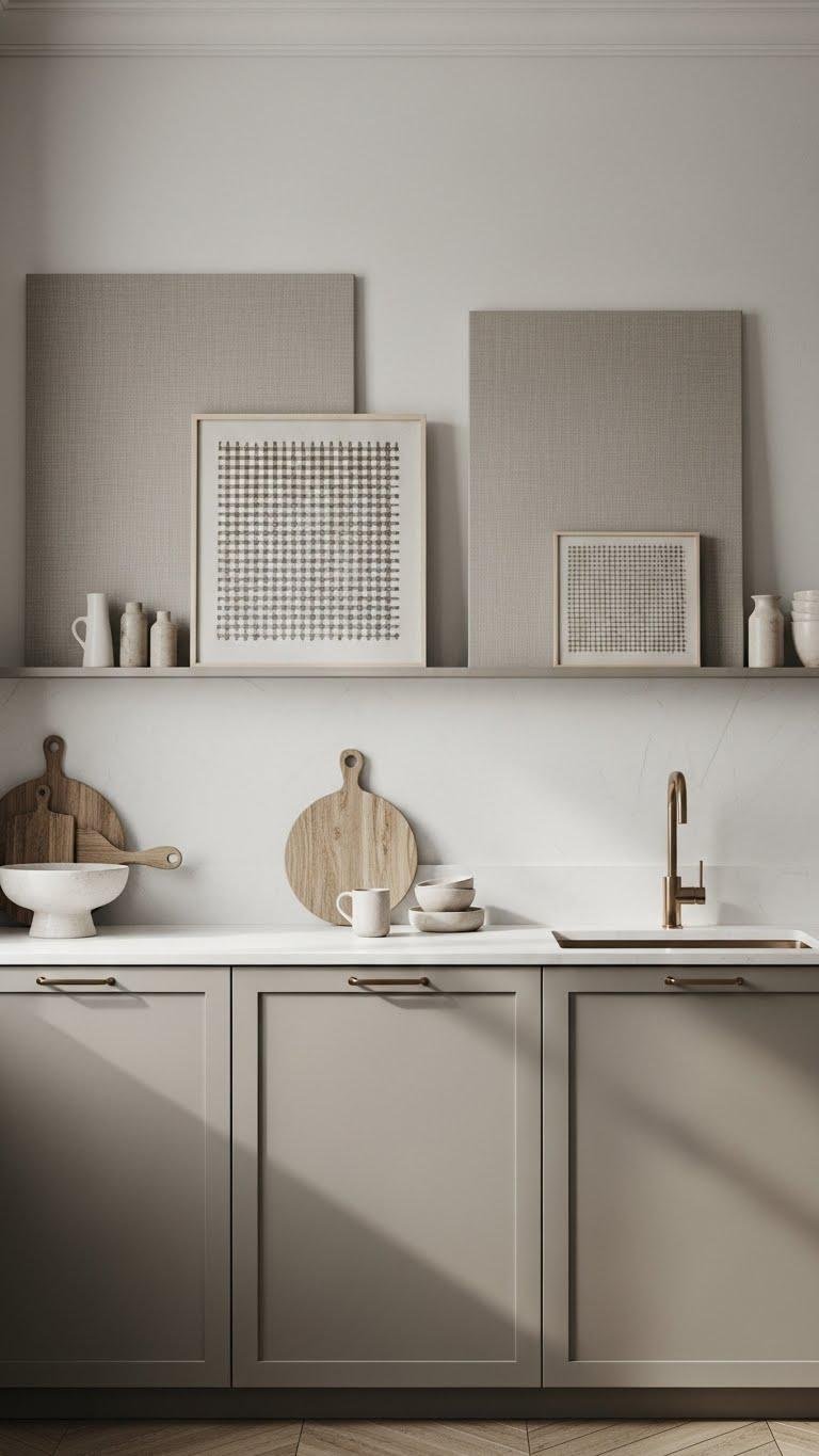 Monochromatic Cabinetry‑and‑Art Pairing