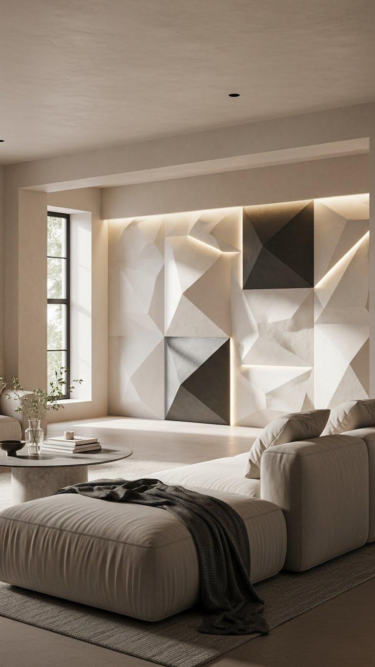 If your oversized, low-slung sectional sets the mood for relaxed living, three-dimensional feature walls give the room a tactile, sculptural backdrop that keeps the space visually interesting without adding clutter. You’ll choose panels that offer textured relief and subtle lighting to dramatize geometric protrusions, creating liberation in design. These installations feel curated yet effortless, anchoring the room while keeping circulation open.
