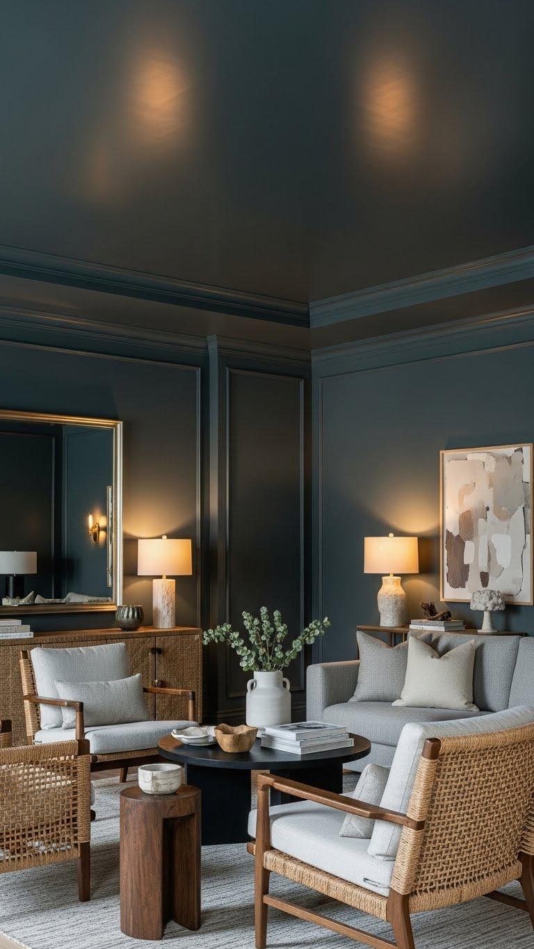 After grounding your seating with natural fibers, look up: painting ceilings, walls, and trim the same bold hue can instantly expand a room’s personality while keeping a cohesive, modern feel.