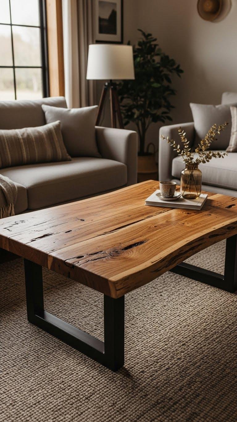 A single, well-chosen reclaimed-wood coffee table can anchor your seating area while telling a sustainable, storied design story.