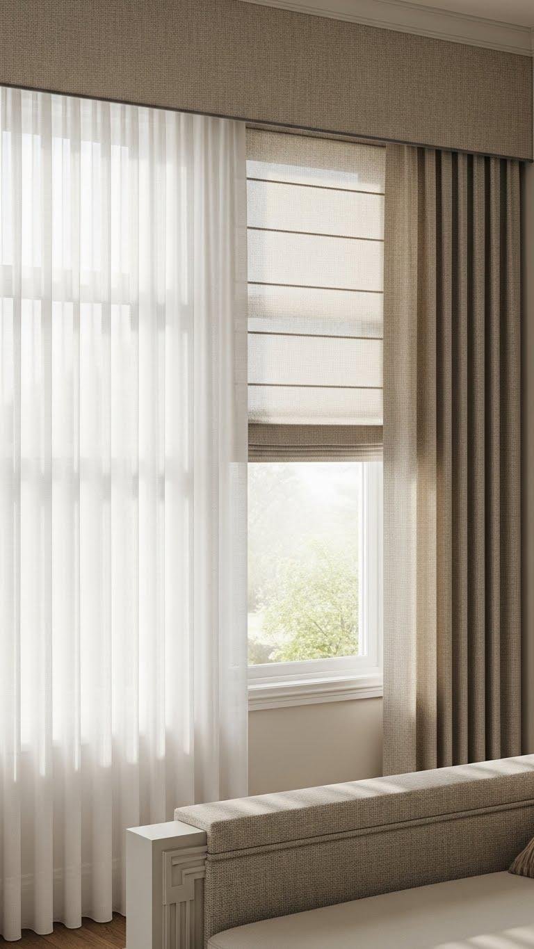 When you combine sheer panels with heavier drapery and a simple blind or shade, you gain precise control over light and privacy while adding tactile depth to the room.