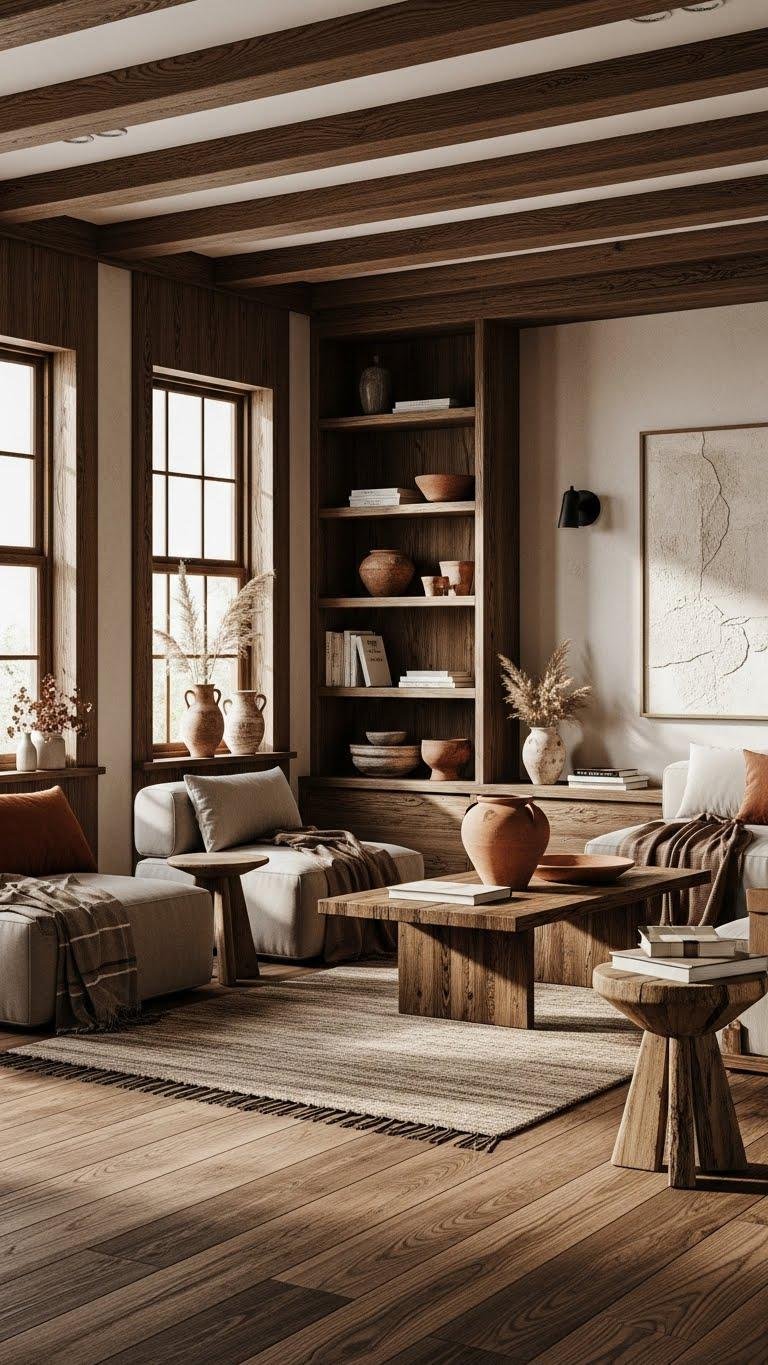 Although you might expect wood to play a supporting role, drenching a room in warm, earthy woods transforms the living space into a cohesive, layered sanctuary that feels both grounded and modern.