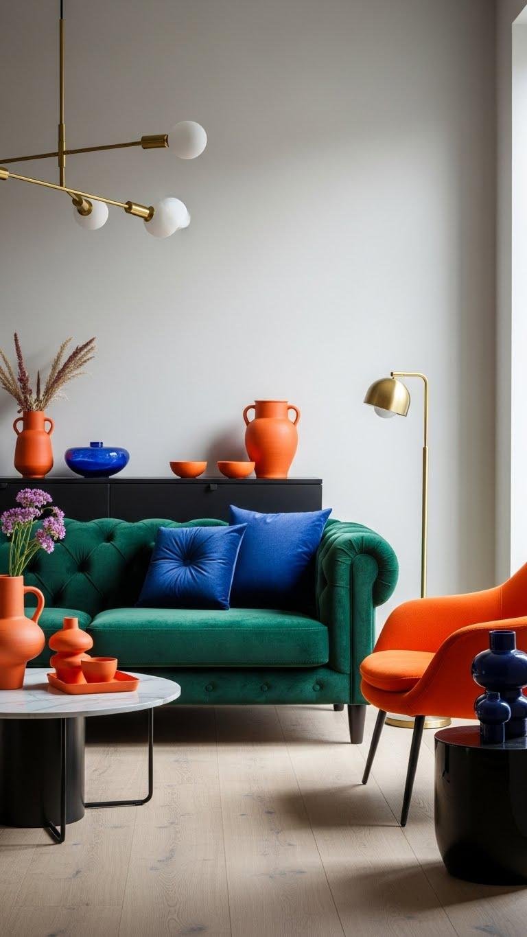 When you layer saturated emeralds, jewel-toned sapphires, and punchy oranges, you create a maximalist dialogue that feels intentional rather than chaotic; the trick is balancing intensity with measured neutral anchors so each hue can sing without overpowering the room.