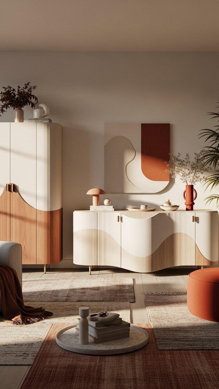 Introduce scalloped and wavy accent furniture to soften hard lines and inject a playful, sculptural energy into your living room. You’ll choose scalloped cabinetry for subtle curves and storage that feels curated, or pick wavy sideboards as bold focal points.