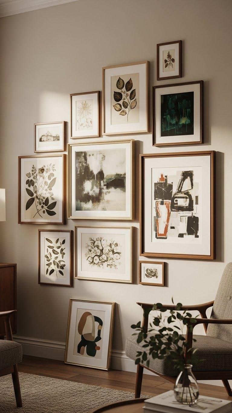 Mix scales, use layered frames for depth, and choose a neutral backing to unify diverse works. Hang slightly off-center, vary spacing, and swap pieces seasonally so your display feels intentional, relaxed, and fully yours.