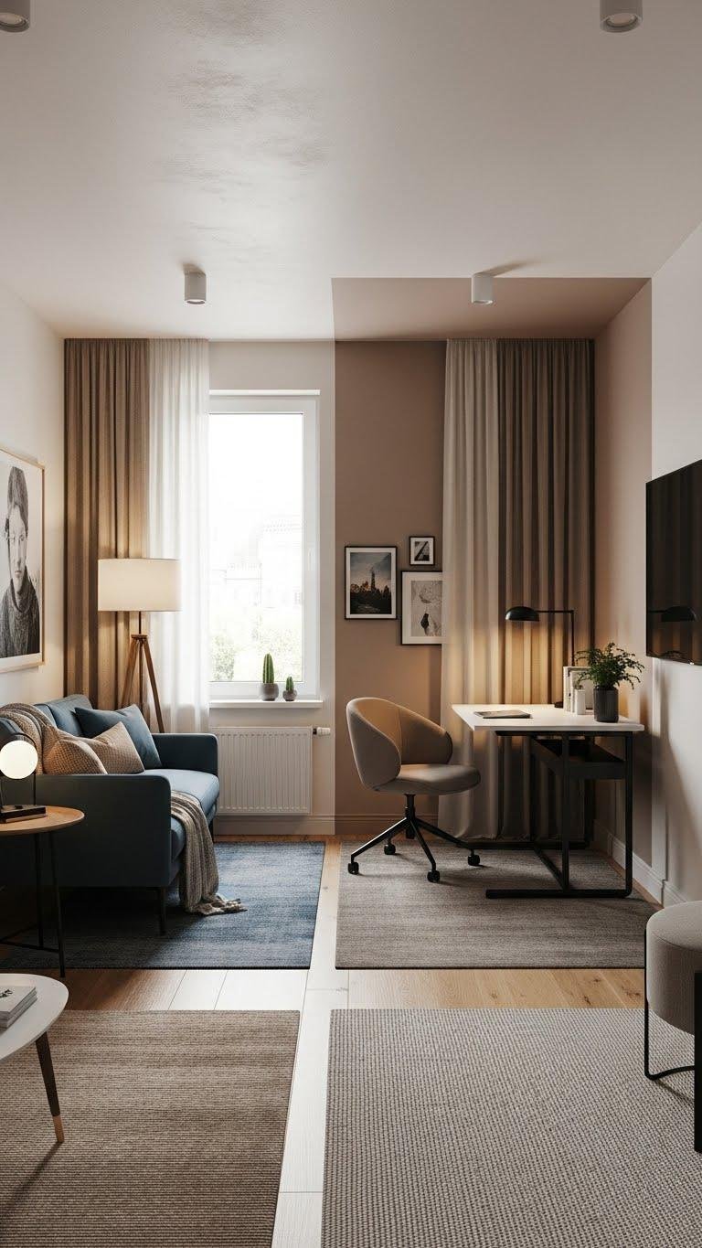 Choose a convertible ottoman for hidden storage and seating, and a folding desk that tucks away when not in use. Prioritize clean lines and effortless movement.
