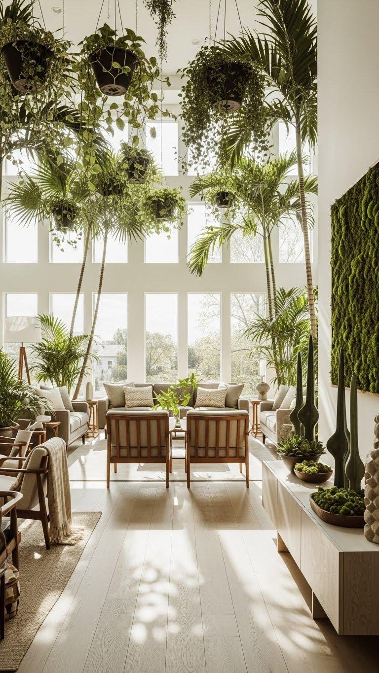Introduce greenery and daylight to soften hard lines and boost wellbeing—place plants where they’ll thrive and arrange seating to make the most of natural light. You’ll create an indoor canopy with tall palms or hanging pots, curate low-maintenance clusters for effortless abundance, and use moss art or sculptural succulents to add texture.