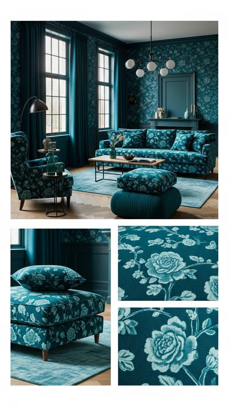 Choose monochrome wallpaper or pattern saturated upholstery, then balance scale and texture so the look feels intentional, not overpowering.