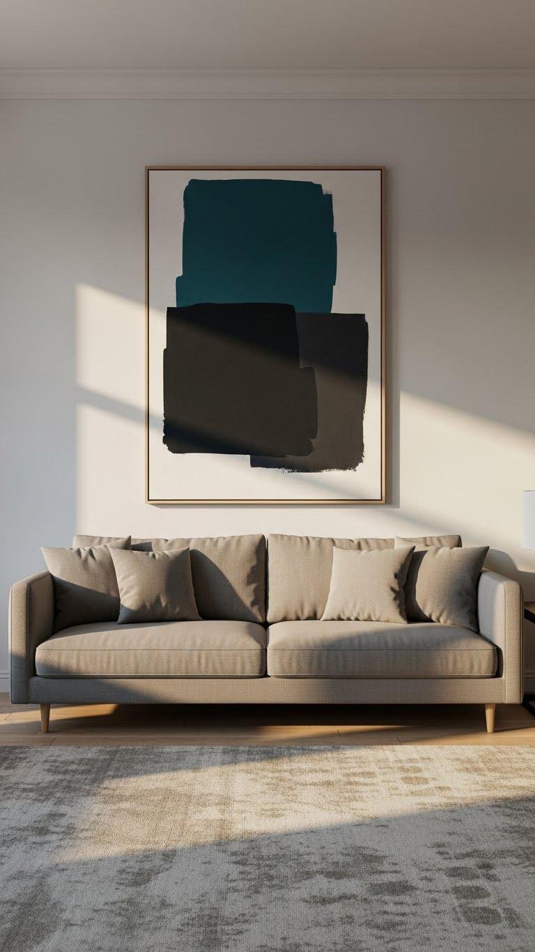 When you center one large piece above the sofa, it instantly anchors the room and sets the scale for everything else; choose artwork that complements your sofa’s color and the wall’s proportions so the piece feels intentional, not overpowering.