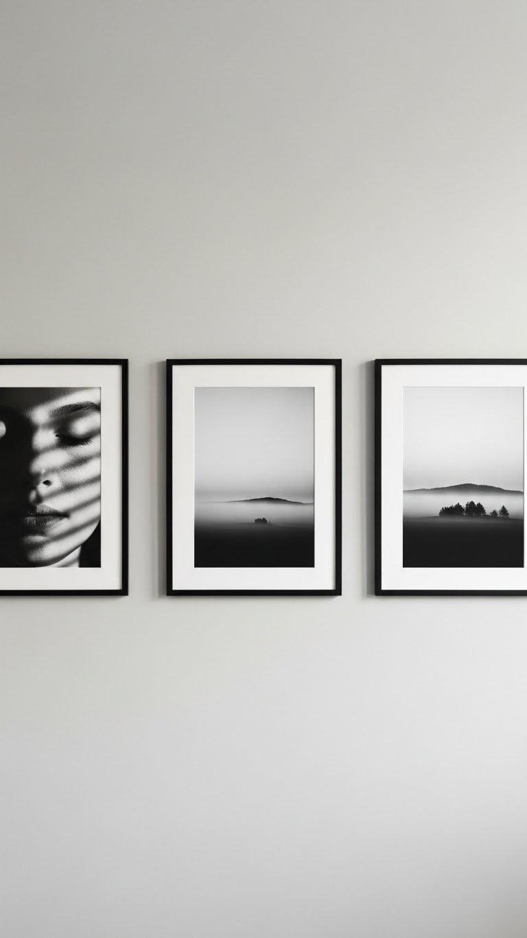 After you’ve mastered the rhythm of a three-piece cluster, let monochrome photography bring a quiet, cohesive counterpoint to the room.