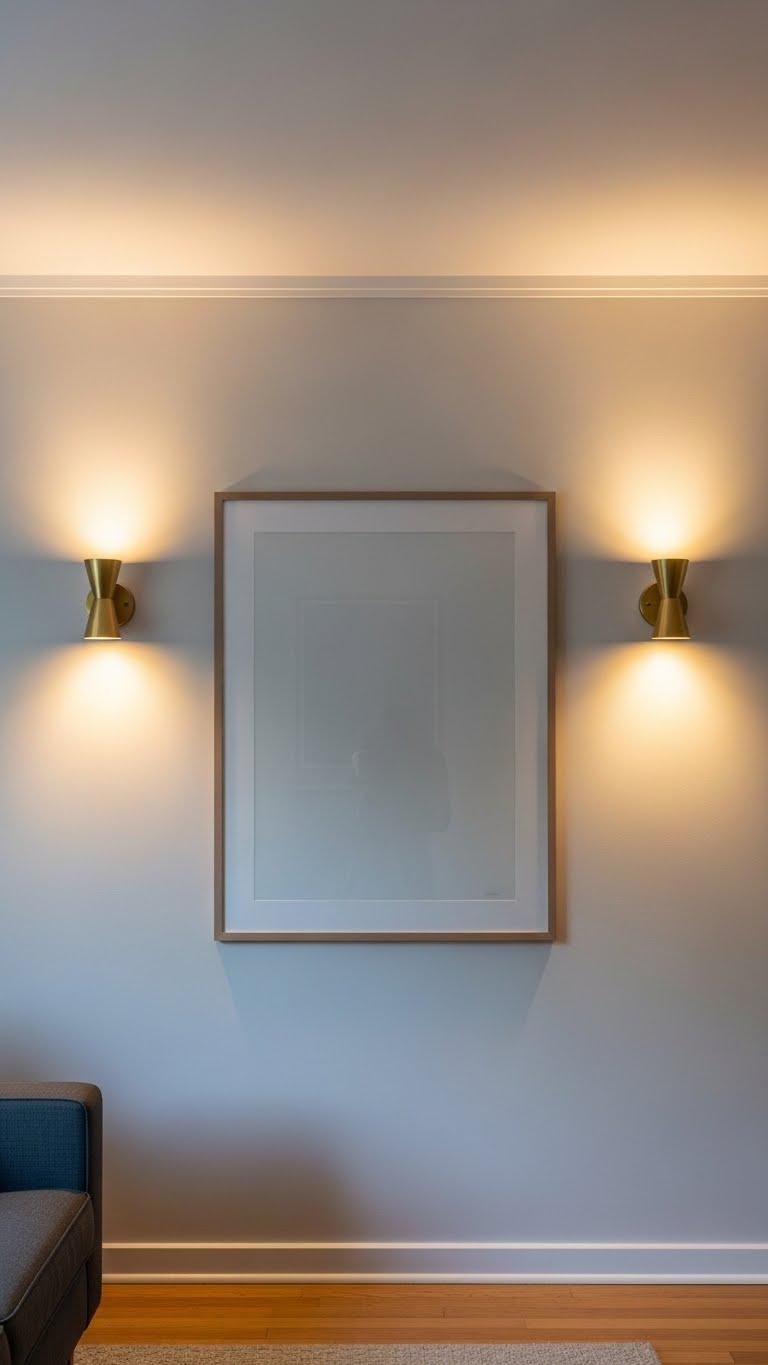 When you flank a focal artwork with matching wall sconces, you create immediate balance and a polished, gallery-like feel that anchors the room while highlighting the piece.