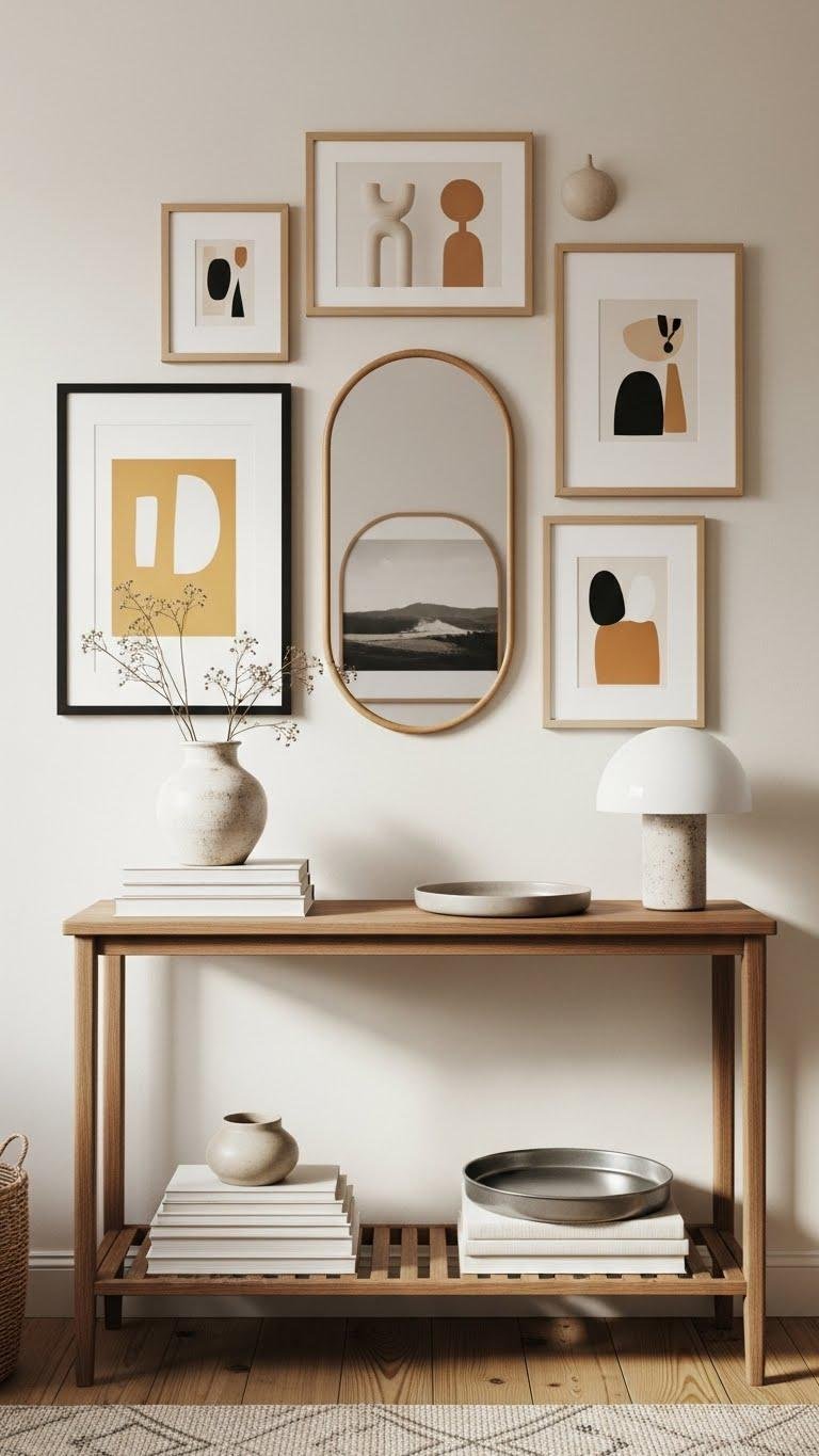 Embrace console styling that balances scale and negative space; mix frames, mirrors, and sculptural objects.