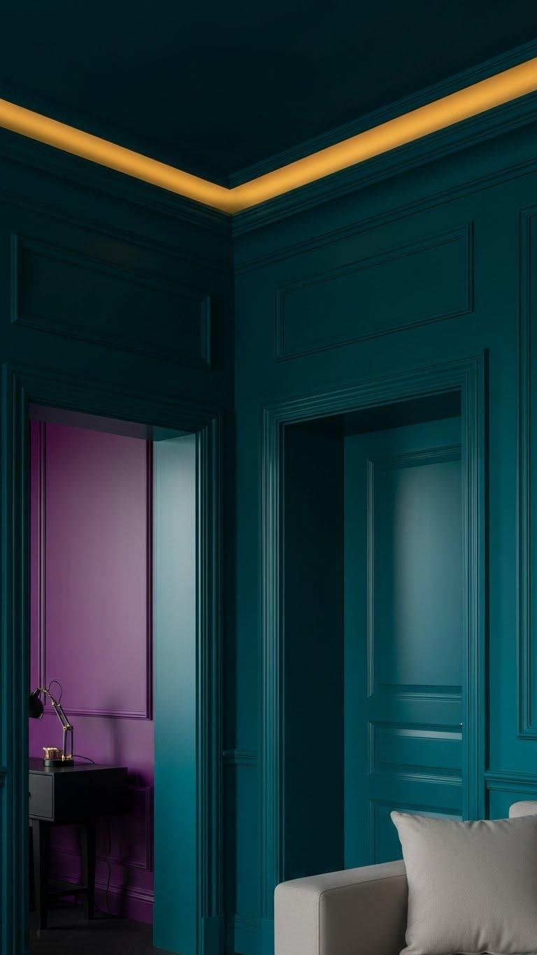 When you commit to color-drenched walls and trim, you’re choosing bold cohesion over neutral hesitation — saturated hues wrapping ceilings, moldings, and doors turn every surface into a deliberate design move. You’ll wield jewel tones and monochrome schemes with confidence, pairing high gloss finishes and lacquered trim to amplify depth.