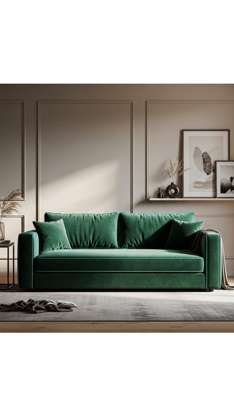 Anchor your room with a single saturated showpiece sofa that commands attention without shouting—think a jewel-toned velvet or lacquered leather silhouette set against a calm, neutral backdrop. You’ll choose a velvet statement, low slung profile that feels liberated and modern. Trust artisan tailoring and bold piping to deliver confidence; pair minimal accents so the sofa remains the unapologetic focal point.