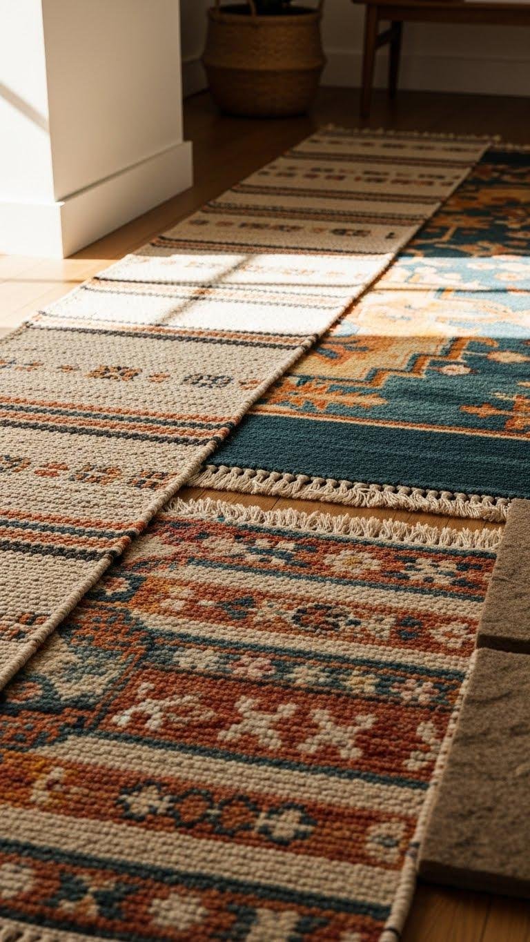 Layer rugs to create instant depth and a curated, lived-in look that feels both intentional and effortless. You’ll pair layered runners with bolder area pieces, anchoring seating and pathways while letting patterns play. Use textured pads beneath thinner weaves to add cushion, prevent slipping, and increase visual contrast. Mix scale confidently, balancing color and motif so each layer reads as liberated, not chaotic.