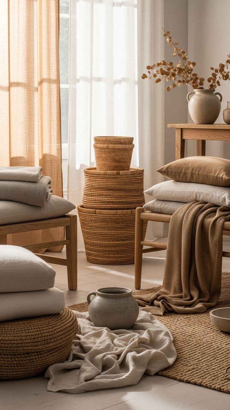 Let natural fibers corral blankets, magazines, and plants, keeping things airy and intentional. This simple swap invites comfort and the freedom to live lightly.
