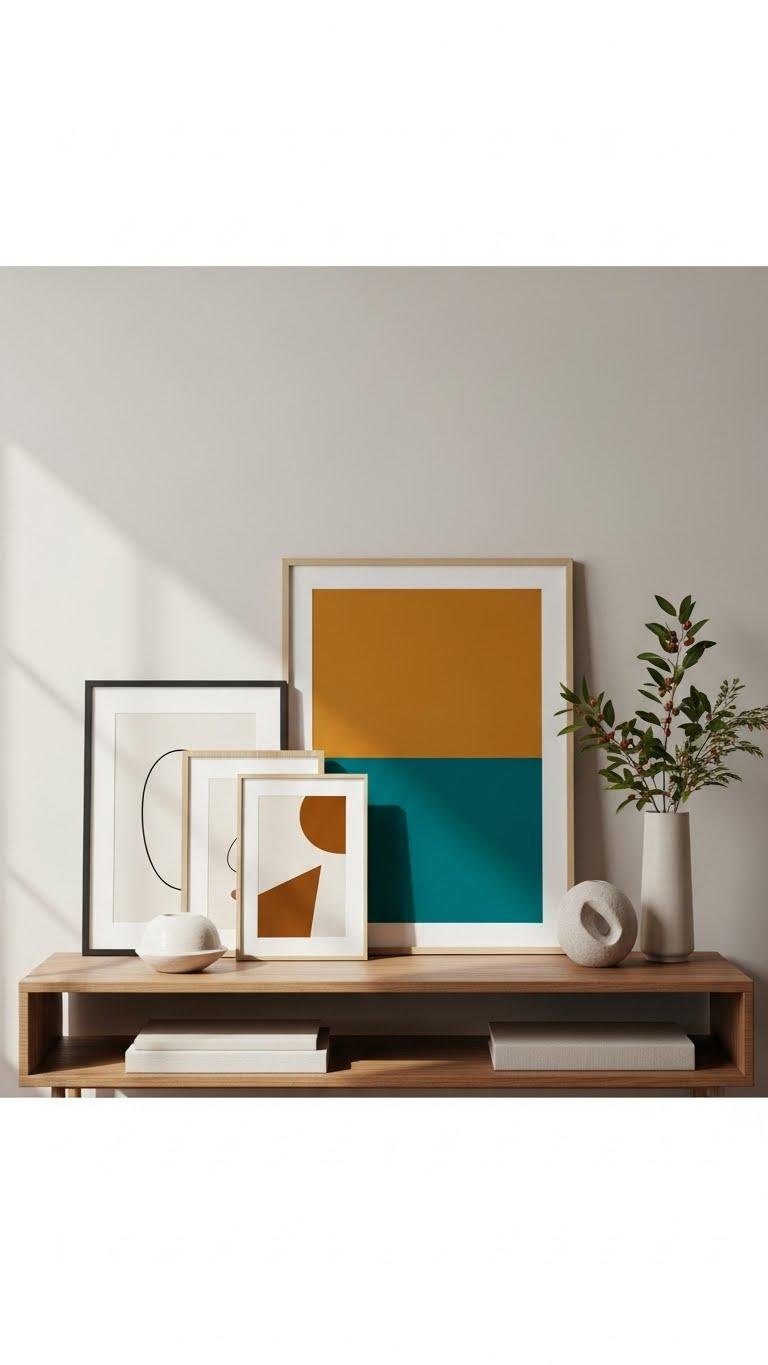 By arranging a small group of artworks together you’ll create a focused vignette that feels intentional, not cluttered.