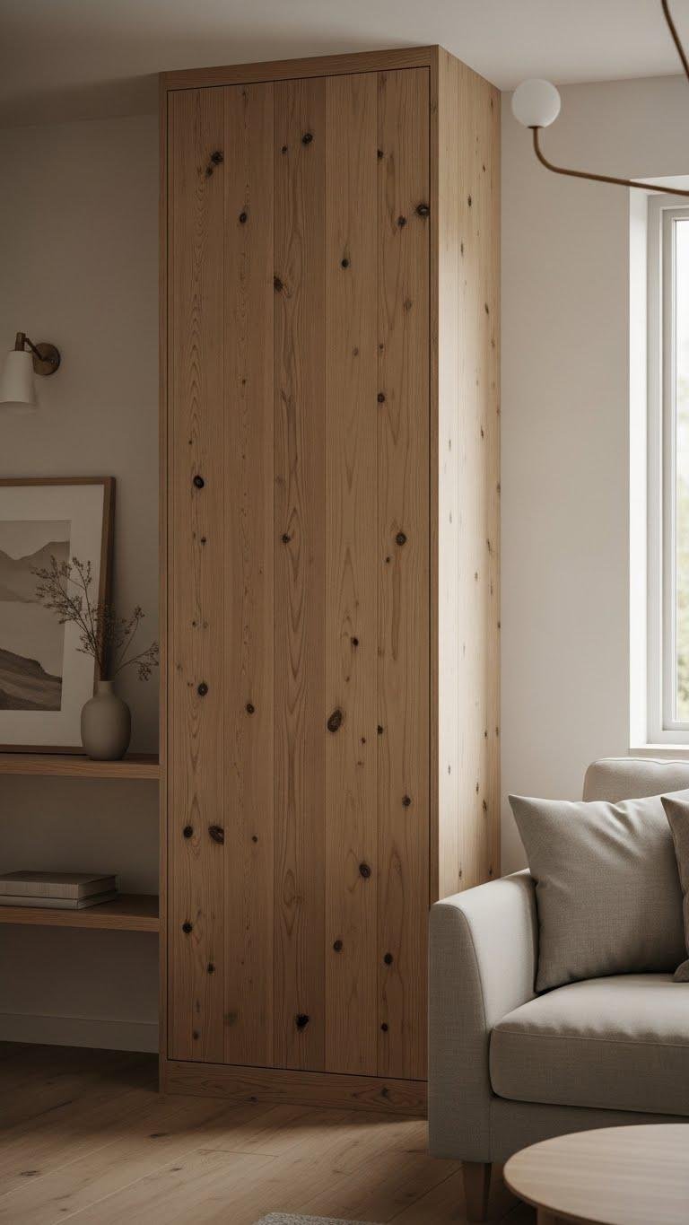 When you install natural wood paneling as a built-in feature, it instantly anchors a room with warmth and tactile depth while keeping the palette serene.