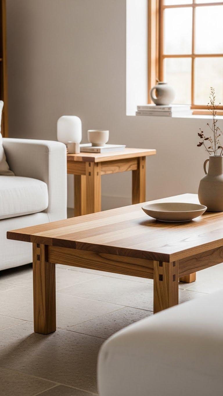 Anchor your seating area with a solid wood coffee or side table that brings warmth and honest craftsmanship to a minimalist scheme. Choose pieces with clear grain, durable joinery, and sustainable sourcing so your freedom-loving space feels rooted and responsible. You’ll enjoy tactile simplicity, low-fuss finishes, and minimalist maintenance that lets the wood age gracefully, inviting calm without clutter or compromise.