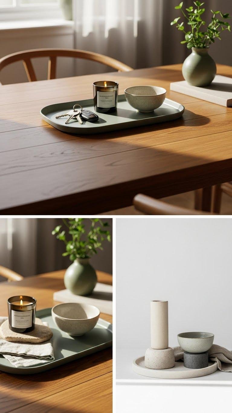 You’ll place intentional trays to corral keys, a candle, or a small bowl.