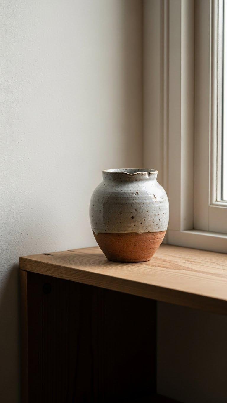 Place a single vessel on an open shelf or windowsill to anchor airiness, honor craftsmanship, and keep your space free and grounded.