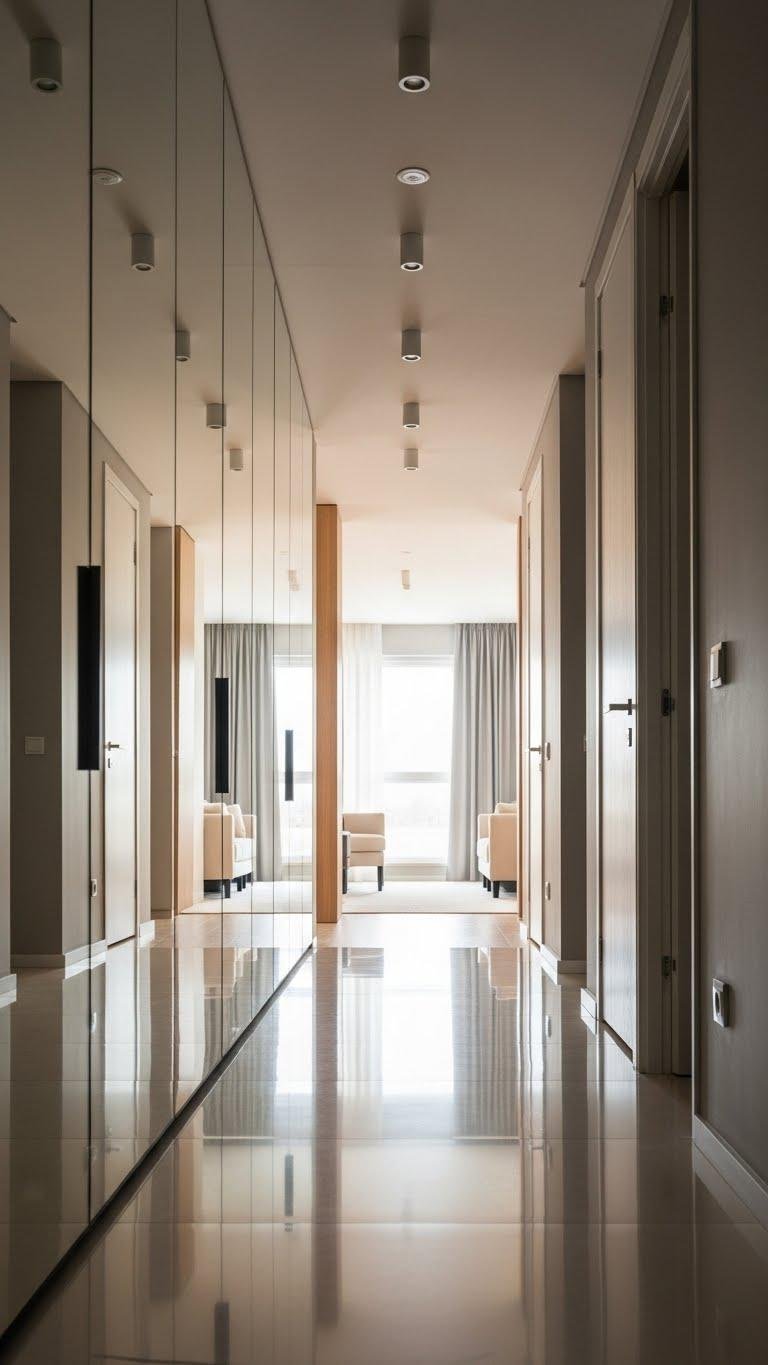 Floor-to-Ceiling Panel Mirrors in a Hallway