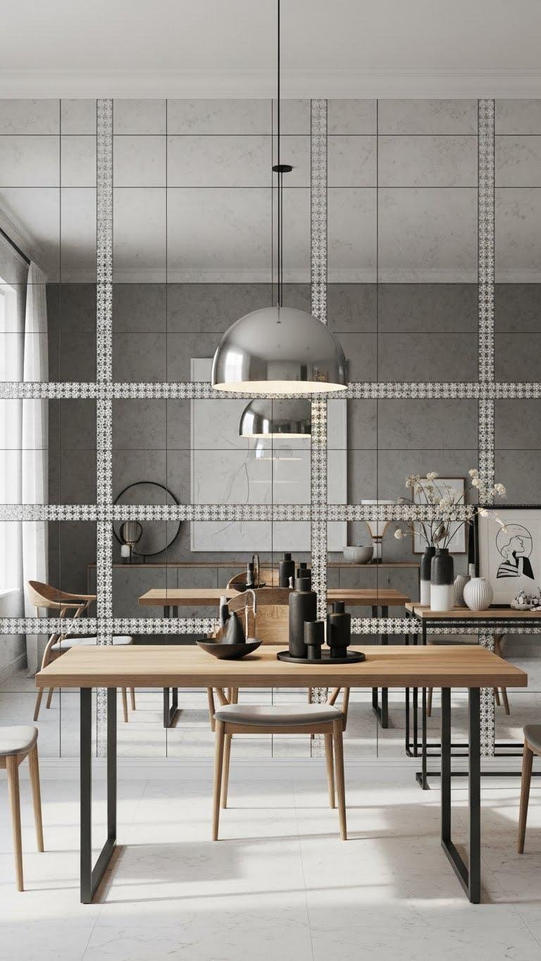 Framing your dining area with a mirrored accent wall instantly doubles light and creates a lively backdrop that makes meals feel more expansive and festive.