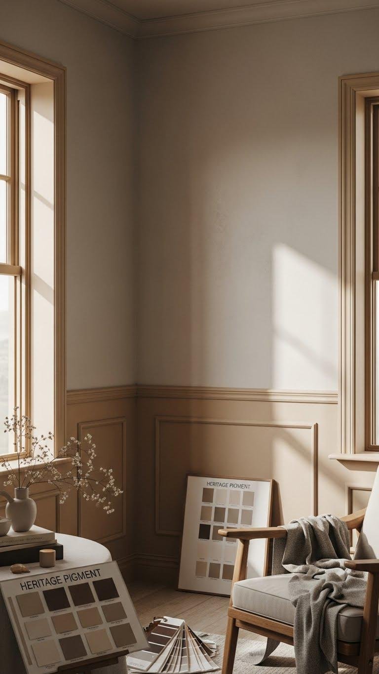 When you pick a warm-neutral paint palette, aim for tones that feel cozy without leaning too brown or too gray—think soft greiges, muted taupes, and creamy beiges with a hint of amber. You’ll tap heritage pigments and consult undertone guides to balance warmth and light. Choose finishes that show texture, let natural light sing, and keep the room open so you feel free and grounded.