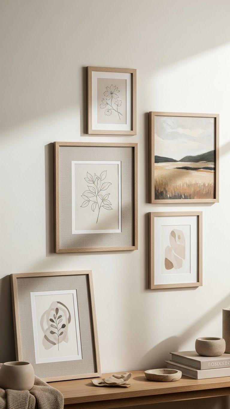 When you introduce restrained artwork in muted tones, let pieces whisper rather than shout—soft washes of beige, dove gray, and desaturated clay keep the room calm while adding texture and focus.